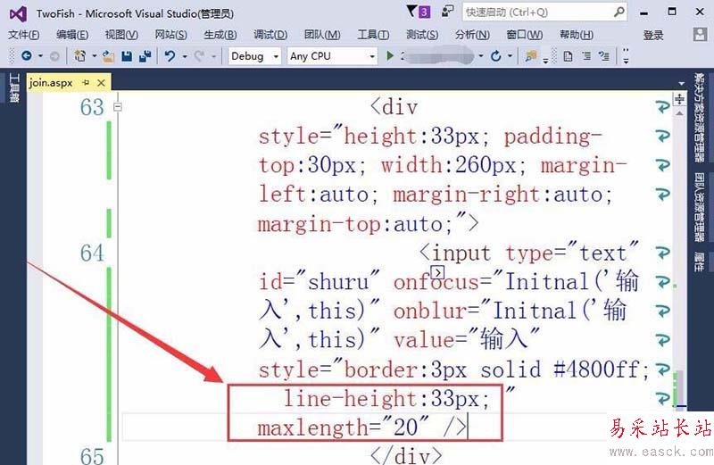 12、最后,設置輸入文本框的行高,以及能輸入的最多字符數。