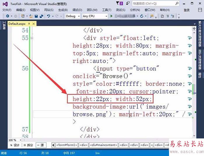 10、設(shè)置按鈕的高為22像素、寬為52像素。