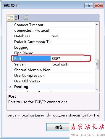 5、這里再添加一個說明,若你的數(shù)據(jù)庫設置的端口為‘3306’(默認),則按照第四步執(zhí)行即可,若你的數(shù)據(jù)庫端口更改了,比如改成了‘3307’,那么就在第四步的基礎上點擊【高級】,把里面的【port】改為對應的’3307‘即可,如下圖所示: