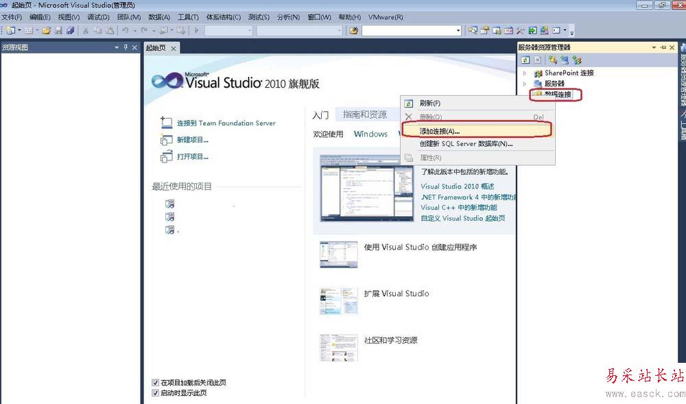 2、找到服務器資源管理器里的【數(shù)據(jù)連接】,右鍵點擊【數(shù)據(jù)連接】在彈出的框里點擊【添加連接】,如下圖所示: