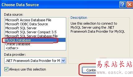 3、在彈出的方框里選擇【MySQL Database】,在點擊【繼續(xù)】,如下圖所示: