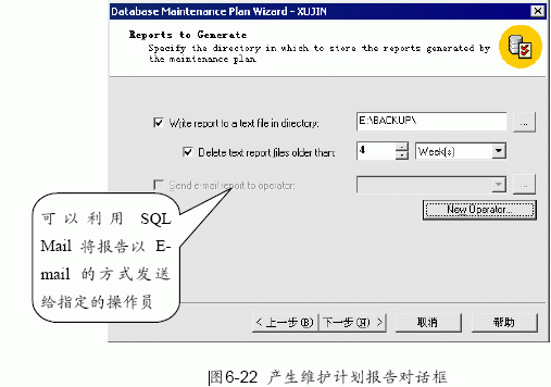 (9) 單擊下一步按鈕出現如圖6-22 所示的產生維護計劃報告對話框可以選擇報告的存放目錄等選項