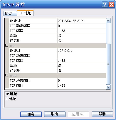 6、使用ipsec策略阻止所有地址訪問本機的tcp1433與udp1434端口,也可對tcp1433端口進行修改,但是在sql2005中,可以使用tcp動態端口,(在sql server configuration manager的sql 2005網絡配置中)如下圖
