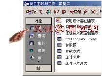 注:“員工工時與工資”數據庫窗口提供了一個工具欄,從中可以選擇使用“設計”視圖(參閱后面的內容),以及列表的方式。各列表方式與其它的windows應用程序相同,它們是:“圖標”與“列表”等。