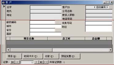 在“客戶”表中,中文access 2000的“數據庫向導”已經建立好了所需要的字段,并且允許您此后為這些字段輸入記錄,如果需要的話還能增加新的字段,刪除多余的字段。