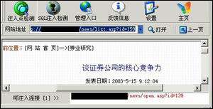 第一步:很多新手從網上下載sql通用防注入系統的程序,在需要防范注入的頁面頭部用 來防止別人進行手動注入測試(如圖1)。
