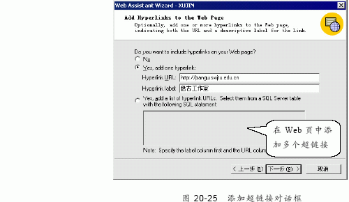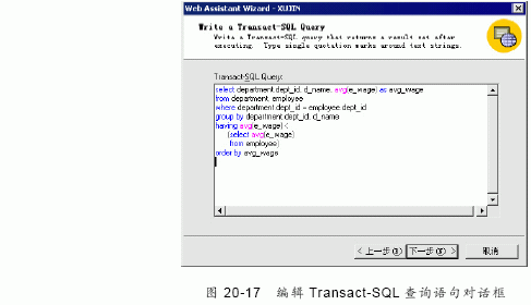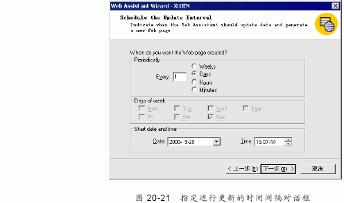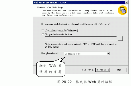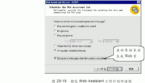 data from the transact-sql statement i specify: 使用自定義的查詢語句進行查詢; 圖20-12 定義web assistant 工作計劃對話框