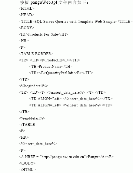 利用sql server 的數(shù)據(jù)生成標準的html 文件。web assistant wizard 通常是通過使用transact-sql 查詢語句或存儲過程來生成html 文件的;