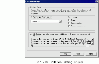 增加或刪除用戶數據庫。但是如果增加或刪除文件或文件組,或用戶數據庫自動增加來容納新添加的數據,這些操作并不對master 數據庫產生影響,所以此時不必對其進行備份; 創建新的登錄或執行與登錄有關的操作,但是增加數據庫用戶并不影響master 數據庫; 創建或刪除備份設備; 為了進行分布式查詢或遠程過程調用而對數據庫服務器進行配置,如增加連接服務器或遠程登錄等。 對master 數據庫,我們常進行完全數據庫備份。而恢復master 數據庫,卻有兩種途徑:或是使用master 數據庫當前備份,或是執行rebuild master utility 來重建master 數據庫。如果master 數據庫遭到的損壞還不足以使sql server 無法啟動,我們可以使用master 數據庫的當前備份來執行恢復;如果master 遭到嚴重破壞,sql server 無法啟動,或者master 數據庫的當前備份也不能使用,我們則必須執行rebuild master utility 來重建master 數據庫(此時master 數據庫中的所有以前的數據都將丟失),然后再使用備份來進行恢復(如果master 的備份可以使用)。 使用rebuild master utility 來重建master 主要執行以下步驟: (1) 關掉sql server, 然后運行位于/ microsoft sql server/80/tools/binn 下的rebuildem.exe 文件,出現rebuild master 對話框。如圖15-17 所示。 (2)單擊browse 按鈕來瀏覽包括data 文件的源目錄。 (3)單擊setting 按鈕出現collation setting 對話框,如圖15-18 所示。 (4)單擊rebuild 按鈕重建master 數據庫。 重建master 數據庫只是整個恢復工作的開始,然后要裝入master 數據庫的備份。如果備份不可用,則要重新創建任何必要的備份設備,接著恢復msdb model distribution 數據庫以及用戶數據庫。對于那些在master 數據庫最近的備份后所創建的數據庫來說,如果其存在備份,則使用備份進行恢復,如果不存在,只能通過重新連接數據庫文件(數據和日志文件)來重新恢復數據庫。 在sql server 中,我們可以拆開數據庫的數據文件和事務日志文件,然后將它們重新連接到另外的服務器或同一個服務器。拆開數據庫就是將數據庫從sql server 中刪除,但是保持數據和事務日志文件的完整性。然后事務日志和數據文件可在任何運行 sql server 的服務器上被重新連接成該數據庫。因此當您準備把數據庫從一臺機器移到另外的機器上但不重新創建數據庫,或者將數據庫移到另外的磁盤上您會發現數據庫的拆分和連接是很有用處的。