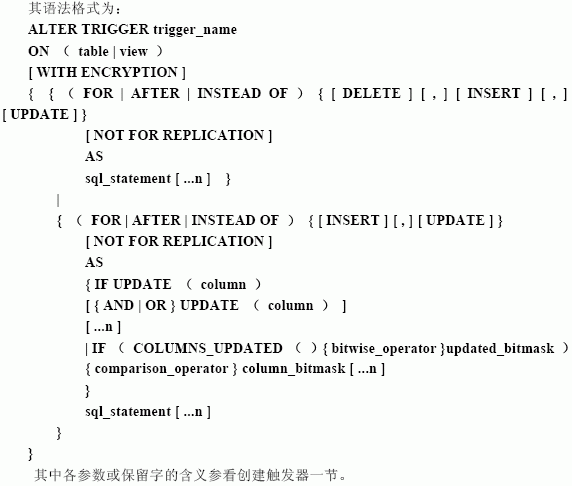 通過enterprise manager 和系統過程或transaction_sql 命令,可以修改觸發器的名字和正文。