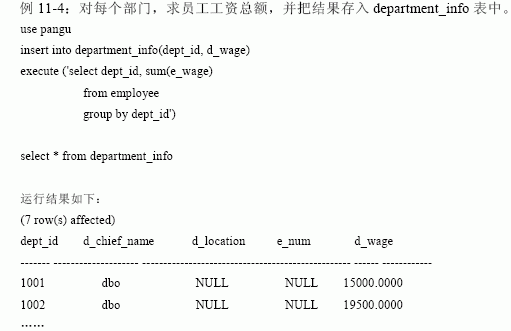 在insert 語句中可以通過執行存儲過程來取得要插入的數據。所插入的數據是存儲