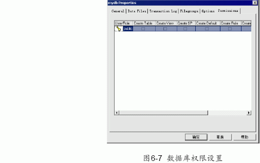 在“permissions” 頁框中可以設定用戶對此數據庫的權限,如圖6-7 所示。有關權限設置的詳細介紹請參見“安全性與用戶管理”章節。
