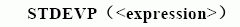 stdevp() 函數返回總體標準差(statistical standard deviation for the population)。表達式及返回值類型同stdev() 函數。
