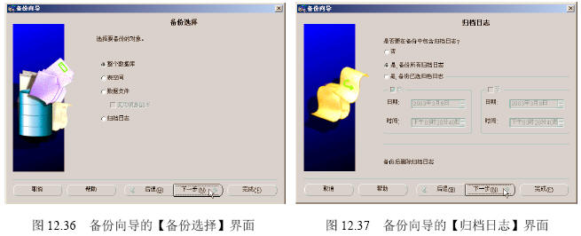 (5)出現如圖12.37所示的備份向導的【歸檔日志】界面。