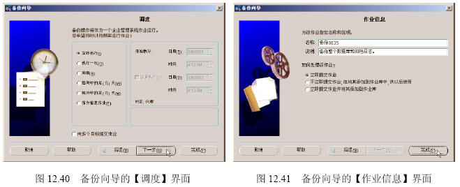 (8)出現如圖12.40所示的備份向導的【調度】界面。