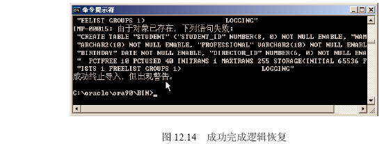 (3)出現如圖12.14所示界面表明利用imp命令文件成功完成邏輯恢復。