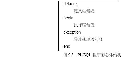 該部分包含在執行部分里面,以exception為標識,對程序執行中產生的異常情況進行處理。一個完整的pl/sql程序的總體結構如圖9.5所示。