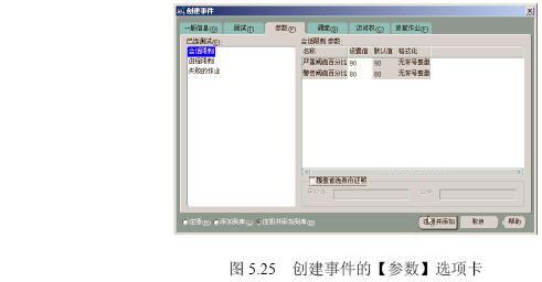 (4)圖5.25所示為創(chuàng)建事件的【參數(shù)】選項卡。