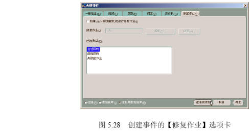 (6)圖5.28所示為創(chuàng)建事件的【修復(fù)作業(yè)】選項卡。