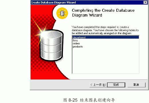 (3) 單擊“下一步”按鈕,即會出現如圖8-25 所示的結束圖表創建對話,框其中列出了即將用于創建圖表的數據庫表。