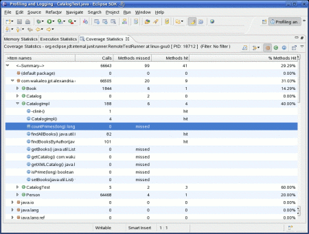 coverage statistics視圖(參見圖8)提供的信息是關于,您剛剛運行的測試用例使用了(因此至少在某種程度上測試了)哪些方法。覆蓋統計數據是一項優秀的功能,盡管它們提供的信息的詳細程度還無法與像cobertura、clover和jcoverage這樣的專業覆蓋工具相提并論(它們可以提供行精度的覆蓋數據,以及行和分支覆蓋的統計數據)。盡管如此,它也有自身的優點,那就是可以提供實時的覆蓋結果,而目前,只有商業的代碼覆蓋工具,例如clover和jcoverage,才能提供行級別的覆蓋報告和完整的ide集成。