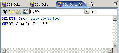 接著,使用 delete sql語句從表中刪除一行數據,如圖22所示。catalogid='3'的行將從表中刪除。