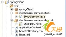 6. 為了簡(jiǎn)化問題,你可以把類從stocktradeserver工程復(fù)制到springclient的src目錄下。在springclient的src目錄下面,創(chuàng)建包stephenlum.services.stock和stephenlum.services.stock.dto。