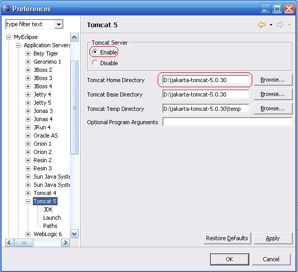 六、指定eclipse+myeclipse的jre 和tomcat 服務(wù)器