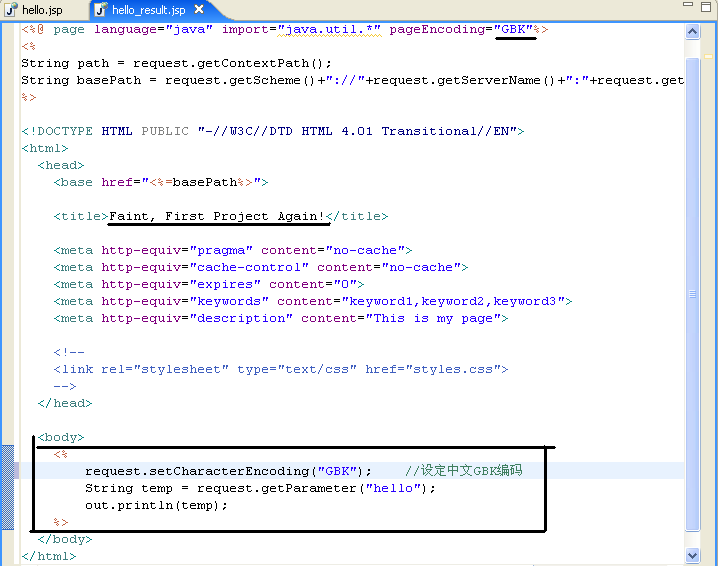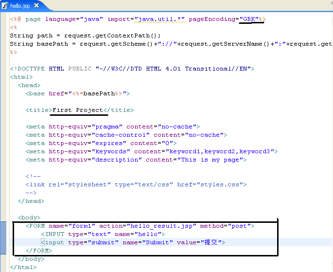 3. 再用同樣的方法, 新建一個叫 hello_result.jsp 的jsp文件, 代碼如下圖: