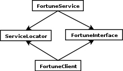 如前面所述,service locator將客戶(hù)和服務(wù)綁定到一起。fortuneinterface只定義了公共接口 ifortunecookie,客戶(hù)可以用它訪問(wèn)cookie消息: