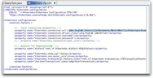 因為知道我不需要使用jta,所以我想知道為什么hibernate要嘗試找到jta。我打開了hibernate配置文件(圖16),然后尋找hibernate synchronizer中的任何可疑之處。無疑有幾行是最有嫌疑的: