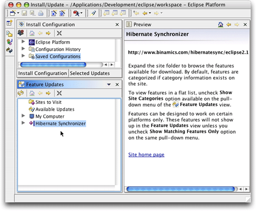圖1. 向update manager添加hibernate synchronizer插件站點