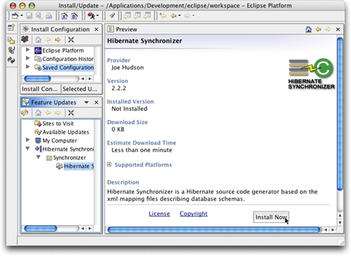 好了,現在已經有了足夠多的抽象描述,是時候開始實踐了!畢竟,您很可能對此產生了興趣,要不您就不會閱讀本文。那么,如何安裝與使用hibernate synchronizer呢?