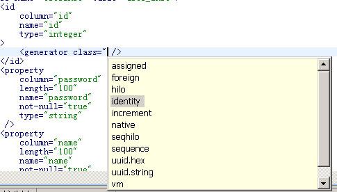 可以看出,插件已經把session操作和事務操作都封裝起來了,我們的代碼工作得到了極大的簡化。而且我們可以利用插件自帶的hibernate editor來編輯hbm文件,非常方便,我們需要把id的生成方式改為“identity”: