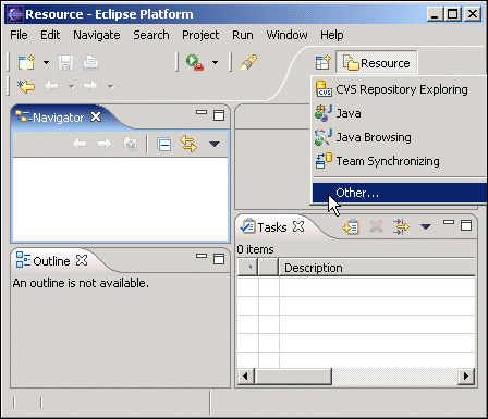 安裝了sqlexplorer插件后,我們將要在eclipse 3.02中配置sqlexplorer.首先,在eclipse中打開sqlexplorer視窗。在eclipse 集成開發環境中單擊 “open a perspective”按扭來打開一個視窗。圖1說明了“open a perspective”按扭。