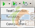 在完成testadddb運行配置項的設(shè)置后,點擊工具欄中  圖標(biāo)右邊的向下箭頭,在彈出的菜單中選擇testadddb,如下圖所示: