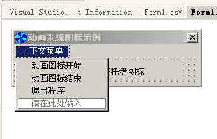| public form1() { // // required for windows form designer support // initializecomponent(); // // todo: add any constructor code after initializecomponent call // m_bflag=true; m_bshowwnd=true; try { m_icon1 = new icon("icon1.ico");//導(dǎo)入圖標(biāo)文件 m_icon2 = new icon("icon2.ico"); } catch ( exception e ) { messagebox.show("error " + e.message,"animate tray - error"); menuitem2.enabled = false; menuitem3.enabled = false; } } 添加menuitem1、menuitem2、menuitem3、m_trayicon的click事件,消息處理函數(shù)如下: private void menuitem1_click(object sender, system.eventargs e) { timer1.start();//打開計時器 } private void menuitem2_click(object sender, system.eventargs e) { timer1.stop();//停止計時器 } private void menuitem3_click(object sender, system.eventargs e) { application.exit();//退出應(yīng)用程序 } private void m_trayicon_click(object sender, system.eventargs e) { if(m_bshowwnd == true)//隱藏主界面 { this.visible = false; m_bshowwnd = false; } else//顯示主界面 { this.visible = true; m_bshowwnd = true; } } |