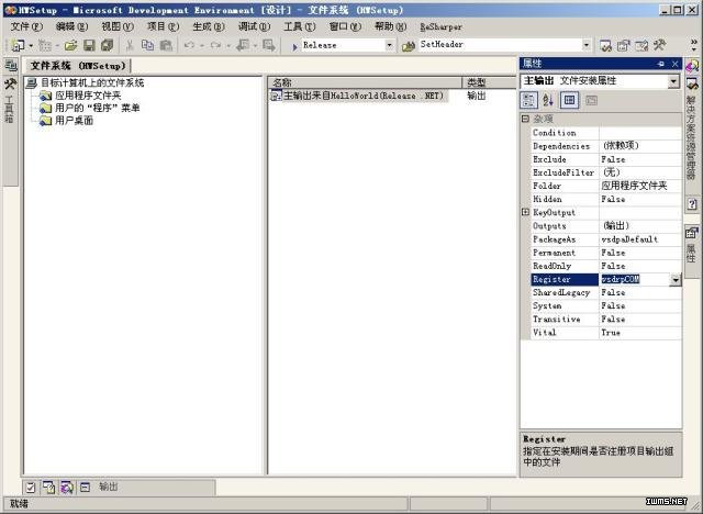 首先,我們建立一個windows安裝項目,并將activex控件的主輸出添加到項目輸出中。然后,改動activex控件的主輸出文件,將其register屬性改為vsdrpcom.如圖:
