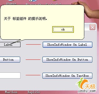 iw.showinfowindow(label1, "關(guān)于標(biāo)簽組件的提示說明。");