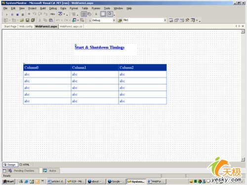 然后,重啟系統(tǒng)以啟動(dòng)服務(wù)。在重啟之后,打開(kāi)file1.xml文件,它記錄了系統(tǒng)的開(kāi)始時(shí)間。如果關(guān)閉系統(tǒng),它將記錄下系統(tǒng)的關(guān)閉時(shí)間和使用系統(tǒng)的時(shí)間長(zhǎng)度。通過(guò)這一部分,我們已經(jīng)完成了記錄下系統(tǒng)所消耗的時(shí)間。接下來(lái),我們將創(chuàng)建一個(gè)web應(yīng)用程序以便在一個(gè)grid控件中顯示xml數(shù)據(jù)。