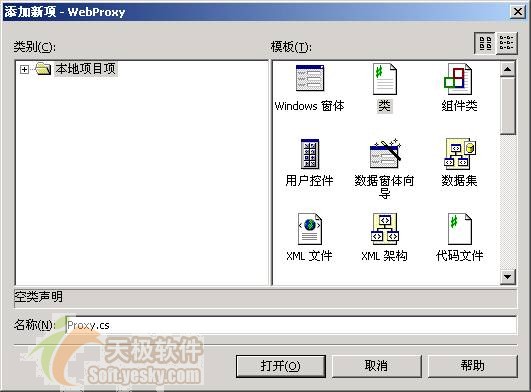 下面是利用上面創建的proxy類,實現web代理程序的具體實現步驟,proxy類被定義在命名空間webproxy中。