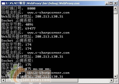 ?。?). 另外一個socket是在代理服務程序偵聽端口號,接收掛起的連接請求時候得到的,以此socket為參數,利用proxy類中的構造函數,來創建一個proxy實例的。此socket實現從客戶端接收http請求信息,并傳送數據到客戶端。