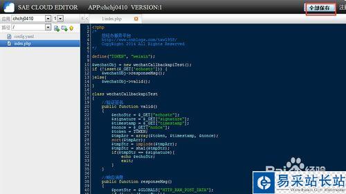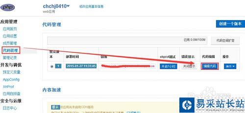 1、查看我們配置的網站代碼,天使使用的是新浪云服務器,登錄成功之后,點擊【代碼管理】【編輯代碼】