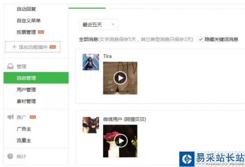 微信公眾號可接收用戶發來的小視頻,并自動保存到公號后臺的素材庫里;公眾號將小視頻插入圖文消息中,并下發給微信用戶。下發渠道包括群發消息、自定義回復、自動回復等。