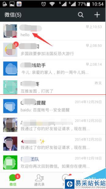 7、再回到微信的聊天主頁面,你會發現剛才的未命名的群聊已經有了新的名字,如圖所示。