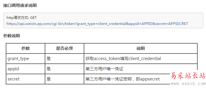 我們要的得到AccessToken,這是所有接口訪問的基礎,我們看看官方給出的接口調用文檔