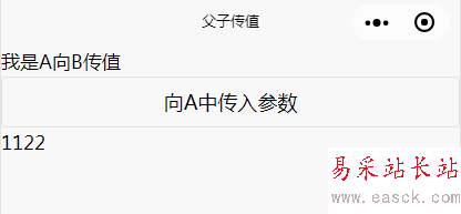 <!-- 父組件A wxml --><view> <componentB paramAtoB='{{paramAtoB}}' bind:myevent="onMyEvent"></componentB> {{ paramBtoA }}</view>// view/father/father.jsPage({ /** * 頁面的初始數據 */ data: { paramAtoB: "我是A向B傳值", paramBtoA: 1122 }, onMyEvent: function (e) { //通過事件接收 this.setData({ paramBtoA: e.detail.paramBtoA }) }})//父組件A json (里面不能有注釋)