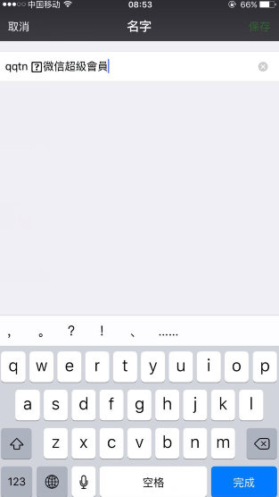 3、復(fù)制粘貼后,輸入自己想要更改的昵稱,你自己的昵稱在前面,字符后面為微信超