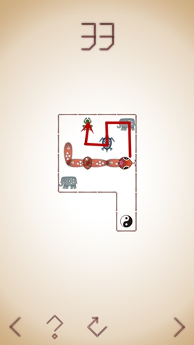 這關首先吃掉老鼠和下面的烏龜,然后觸碰下方的青蛙;依次吃掉大象和烏龜,觸碰上方的青蛙;吃掉剩下的大象,觸碰太極圖即可過關~