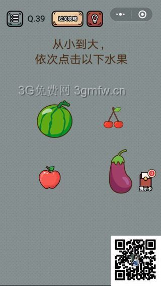 答案:1、櫻桃。2、蘋果。3、西瓜(茄子不是水果哦)